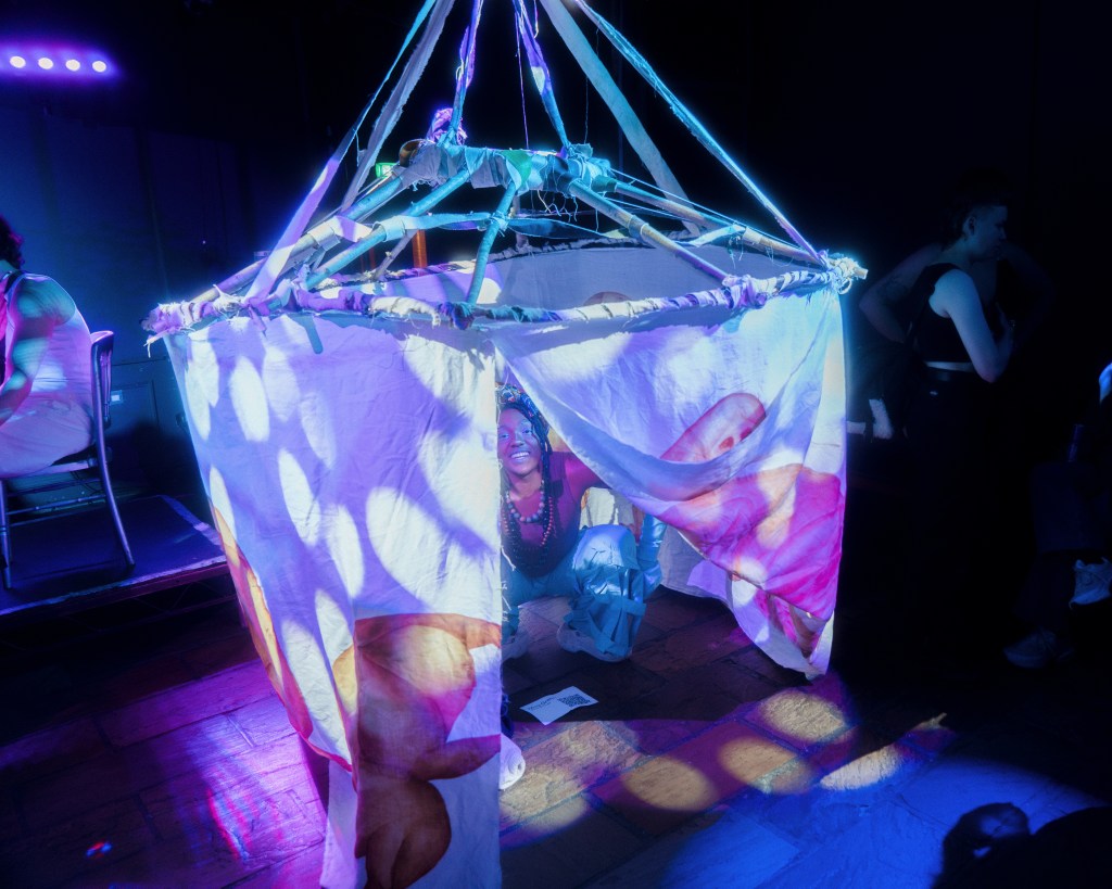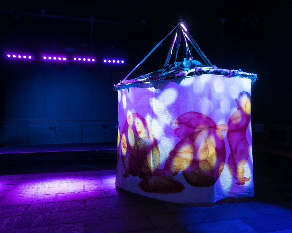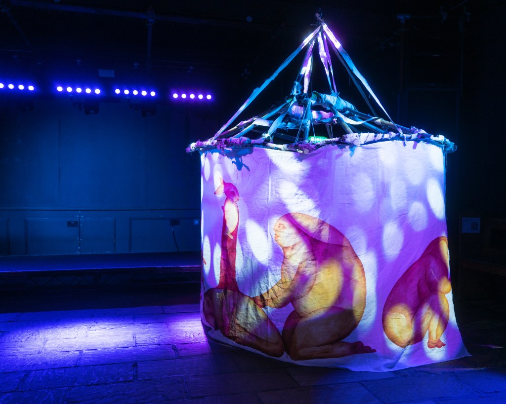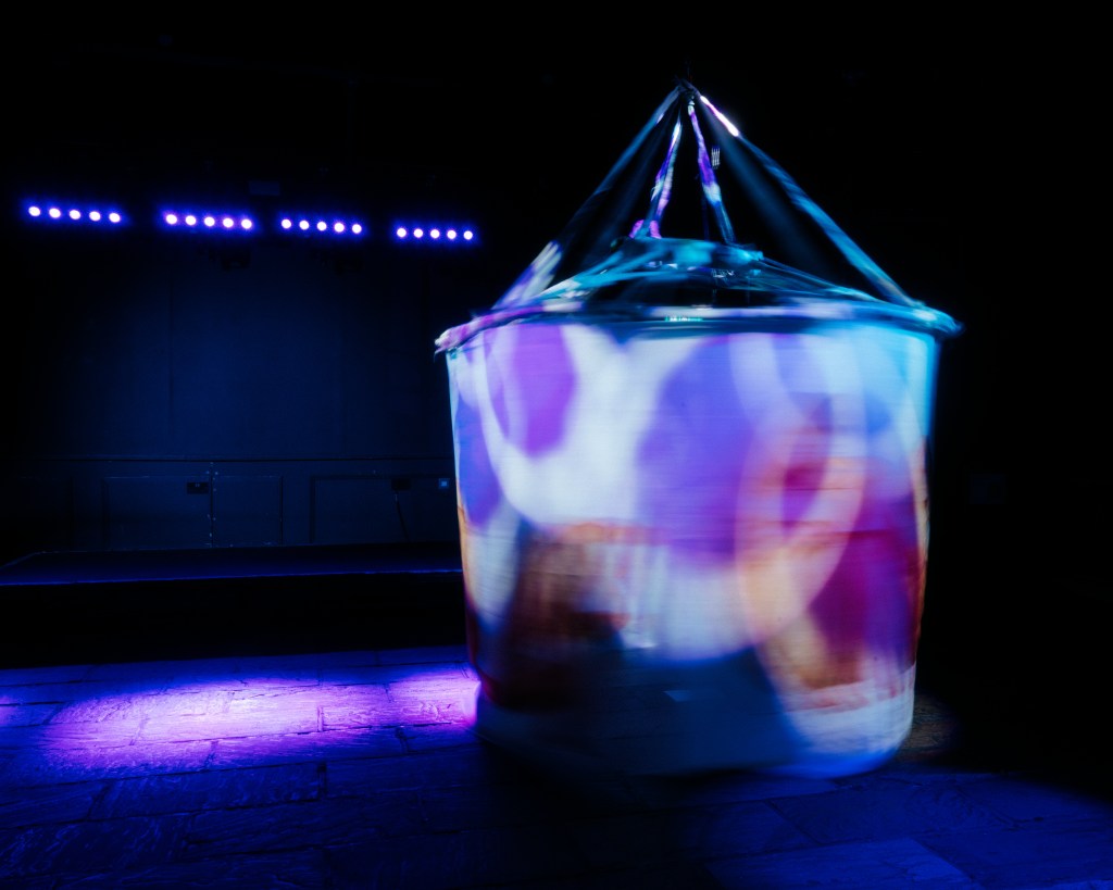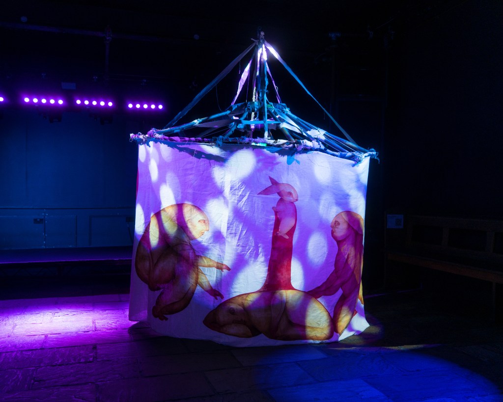 A transformation of Melancholia Beyond Mobility from untouchable sculpture into enterable installation; a liminal space where ravers could step out of their worldly surroundings and into a constructed mythical space.