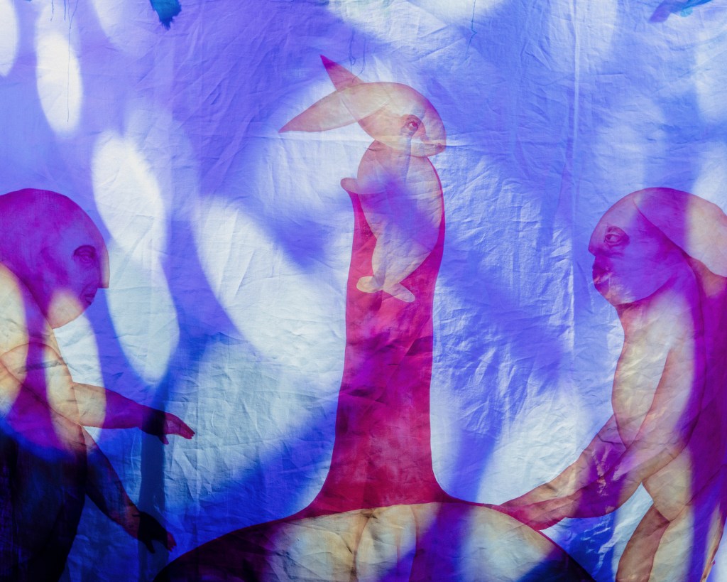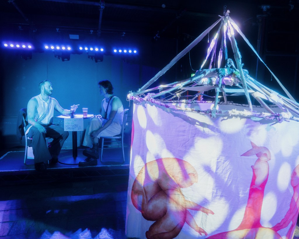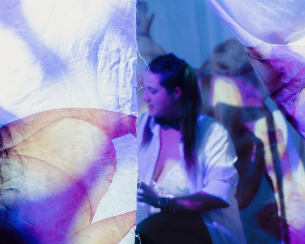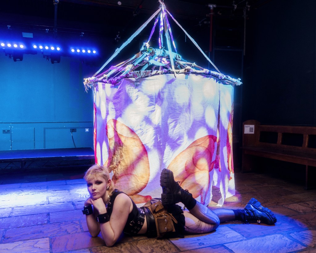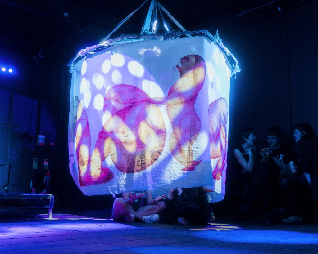 A transformation of Melancholia Beyond Mobility from untouchable sculpture into enterable installation; a liminal space where ravers could step out of their worldly surroundings and into a constructed mythical space.